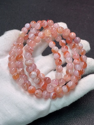 C35121039 Rhodochrosite Bracelet with Visible Organic Matter, Total Weight Approx. 13.29g, Size About 6.7mm