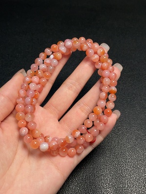 C35182067 Red Agate Bracelet with Visible Organic Matter, Total Weight Approx. 20.42g, Size 7.5mm, Paired with Rhodochrosite