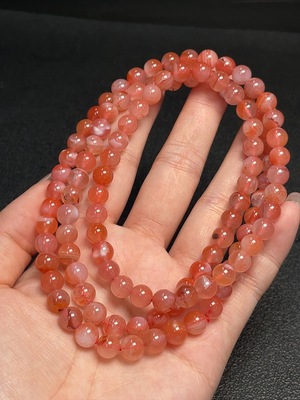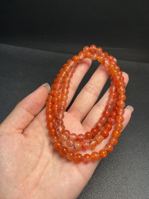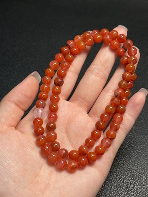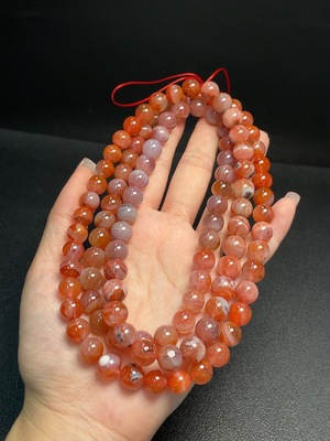 C36241696 South Red Agate Bead Strand with Visible Organic Matter, Total Weight Approx. 63.44g, Sell as a Lot