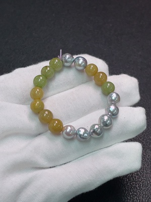 C36271652 Seawater Pearl Bracelet with Non-Natural Accent Stones, Total Weight Approx. 10.75g, Size About 7.1mm