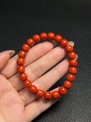 C34041504 Red Agate Bracelet with Visible Organic Inclusions, Total Weight Approximately 20.23g, Bead Size About 8.2mm