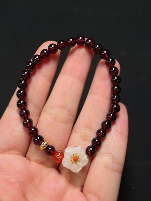C35123065 Garnet Bracelet with Hetian Jade, Non-Gold, Total Weight Approx. 10.9g, Size About 5.3mm