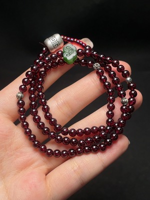 C37360424 Garnet Bead Necklace with Hetian Jade, Non-Gold, Total Weight Approx. 24g, Size About 4.3mm