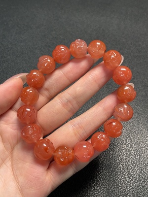 C35181957 South Red Agate Bracelet with Visible Organic Matter, Total Weight Approximately 53.38g, Size About 12.6mm
