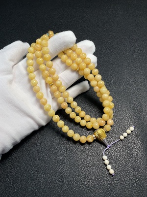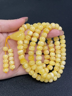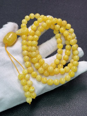 C33922941 Amber Beeswax Bead Strand Total Weight Approx. 40.14g Size About 7.6mm