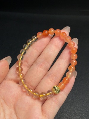 C31621166 South Red Agate Bracelet with Visible Organic Matter, Total Weight Approx. 12.71g, Bead Size 6.7mm, Paired with Crystal