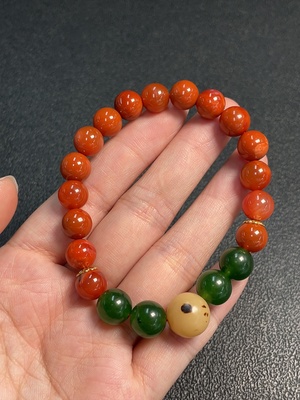 C37455281 Red Agate Bracelet with Visible Organic Matter, Total Weight Approx. 18.76g, Size ~8.6mm