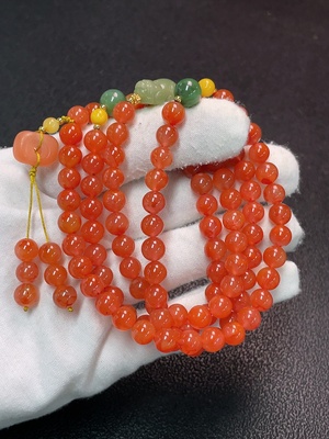 C35185159 Red Agate Bead Strand (Non-Gold, Visible Organic Matter, Possible Non-Natural Accent Stones, Total Weight Approx. 49.23g, Size ~6.5mm)