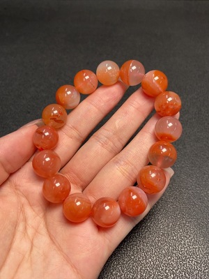 C23685083 Red Agate Bracelet, total weight approx. 39.61g, bead size approx. 11.3mm, visible organic inclusions