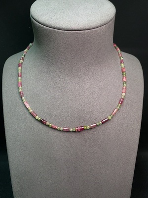 C35153147 Tourmaline bead necklace, non-gold, contains other mineral components, visible organic matter, total weight approx. 11.08g, size approx. 3.6mm