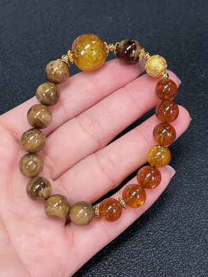 C37371420 Amber and beeswax bracelet with other mineral components, non-gold, total weight approximately 11.08g, size about 9.6-15.1mm