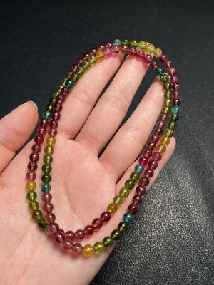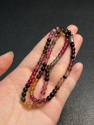 C37455656 Tourmaline bead necklace with visible organic inclusions, total weight approximately 23.07g, bead size about 4.9mm