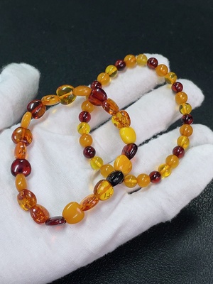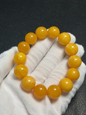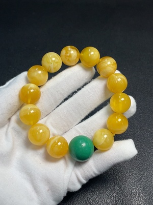 C37448527 Amber Beeswax Bracelet, color origin undetermined, total weight approx. 11.1g, size approx. 10.1mm