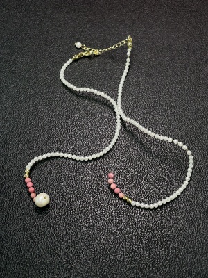 C34006324 Pearl bead chain, largest bead, chain not natural, non-gold, total weight approx. 5.06g, size approx. 8.3mm