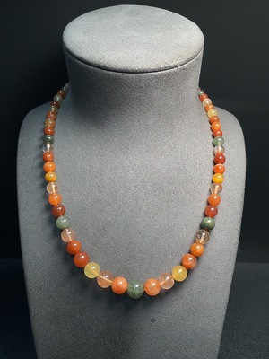 C37410338 Red Agate Bead Necklace with Visible Organic Matter, Total Weight Approximately 43.11g, Bead Size About 6.7mm