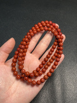 C37410339 South Red Agate Bead Necklace with Visible Organic Matter, Total Weight Approximately 53.38g, Approximately 7.1mm in Size