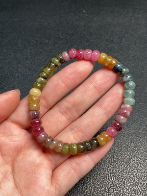 C37436541 Tourmaline bracelet with other mineral components, visible organic matter, non-natural accent stones, total weight approx. 17.82g, size ~6.8mm (with impurities)