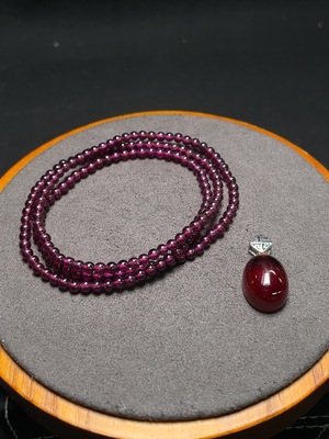 C34988673 Garnet Beaded Necklace with Pendant Non-Gold Total Weight Approx.16g Sell as a Lot