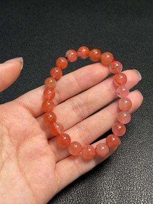 C36227937 Red Agate Bracelet with Visible Organic Matter, Total Weight Approximately 19g, Bead Size About 8.7mm
