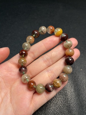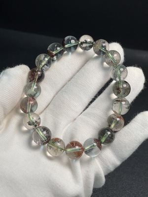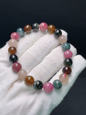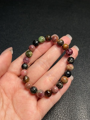 C34006034 Tourmaline bracelet with visible organic inclusions, approx. 23.83g total weight, 9mm beads (mixed stones)