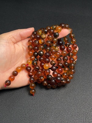 C35203327 Red Agate Bead Necklace with Visible Organic Matter, Total Weight Approx. 52.49g, Size About 7.8mm