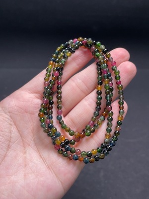 C36238829 Tourmaline bead necklace containing other mineral components with visible organic matter, total weight approximately 14.3g, bead size about 3.4mm