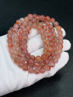 C37370864 South Red Agate Bead Strand with Visible Organic Matter, Total Weight Approx. 64.05g, Size About 7.3mm