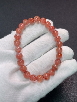 C35152717 Red Agate Bracelet with Visible Organic Matter, Total Weight Approx. 12.81g, Size About 7.2mm
