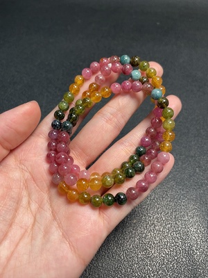 C37378955 Tourmaline bead necklace containing other mineral components with visible organic matter, total weight approximately 31.85g, bead size about 6mm