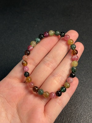 C37409335 Tourmaline bracelet containing other mineral components, visible organic matter, total weight approximately 9.4g, size about 5.8mm