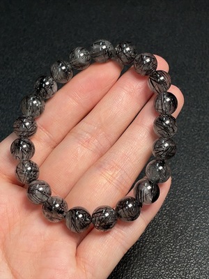 C37385700 Tourmaline bracelet with other mineral components, visible organic matter, total weight approx. 22.14g, size approx. 8.6mm