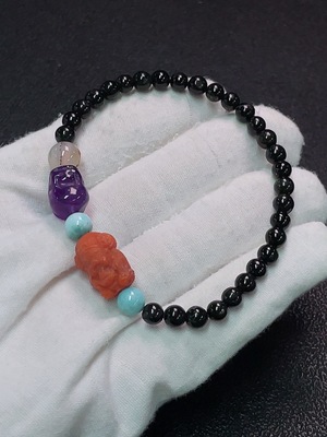 C36232634 Tourmaline Bracelet with Other Mineral Components, Visible Organic Matter, Total Weight Approx. 12.83g, Size About 6.2mm