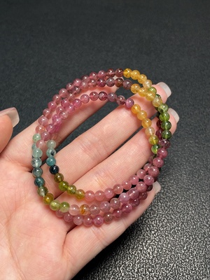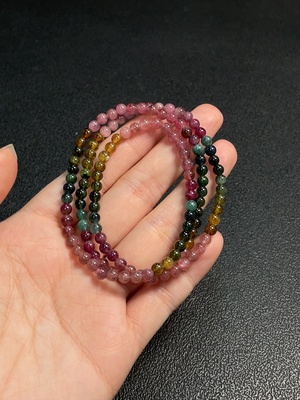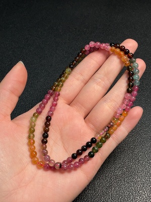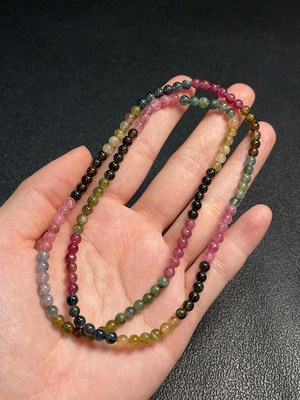 C37409657 Tourmaline bead necklace containing other mineral components with visible organic matter, total weight approximately 16g, bead size about 4.2mm