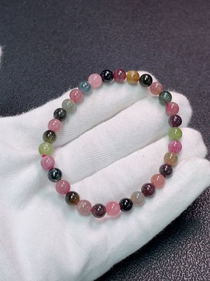 C33868941 Tourmaline Bracelet with Visible Organic Matter and Other Mineral Components, Total Weight Approx. 10.71g, Bead Size ~5.9mm