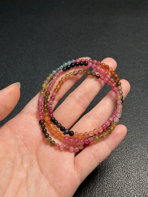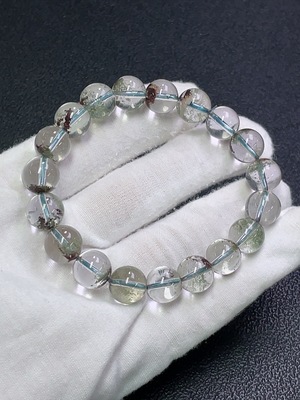 C37368741 Tourmaline bead bracelet containing other mineral components with visible organic matter, total weight approximately 12.28g, bead size about 3.6mm