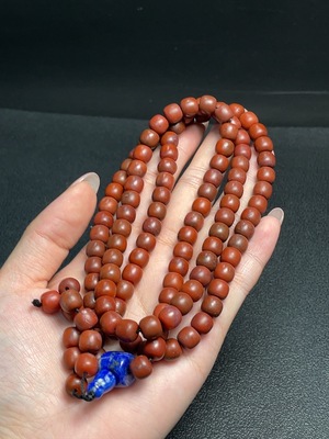 C36241663 Red Agate Bead Necklace with Visible Organic Matter, Total Weight Approximately 33.9g, Sell as a Lot