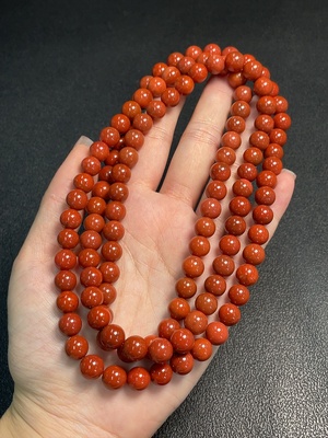 C36239577 South Red Agate Bead Necklace with Visible Organic Matter, Total Weight Approximately 54.23g, Size About 7.2mm