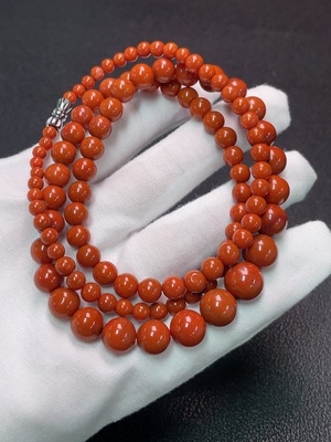 C34006283 South Red Agate Bead Necklace with Visible Organic Matter, Total Weight Approx. 44.76g, Bead Size 3.9-10.9mm, Non-Gold