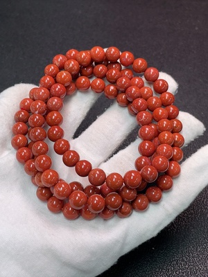 C35096172 South Red Agate Bead Strand with Visible Organic Matter, Total Weight Approximately 57.95g, 7mm Size, Non-Gold