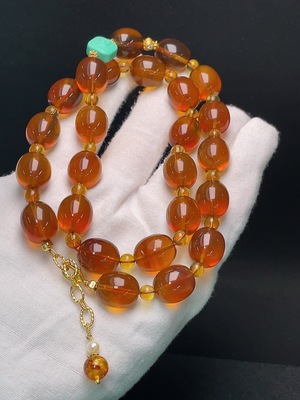 C30472813 Amber Beeswax Bead Necklace, Total Weight Approx. 21.39g, Bead Size About 6.9mm