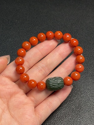 C36243290 South Red Agate Bracelet with Visible Organic Matter, Total Weight Approx. 24.56g, Size About 9.2mm, Paired with Hetian Jade