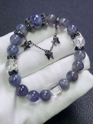 C30509727 Iolite Bracelet with Visible Organic Matter, Non-Natural Accent Stones, Non-Metal, Total Weight Approx. 28.92g, Size ~9.9mm