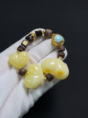 C37369624 Amber Beeswax Bracelet with Larimar and Visible Organic Inclusions, Non-Gold, Total Weight Approx. 31.38g, Size About 20.9mm