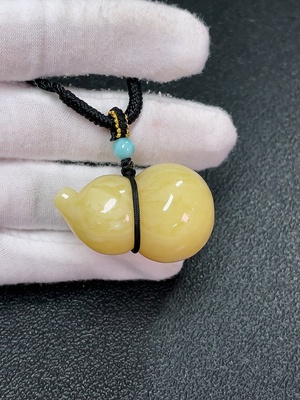 C38484698 Amber Beeswax Pendant with Larimar, Total Weight Approx. 13.89g, Including Rope