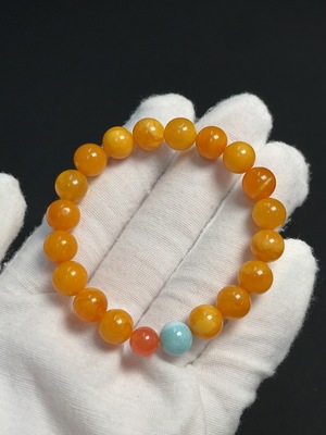 C40680726 Amber Beeswax Bracelet, approx. 8.8mm, total weight approx. 7.85g, with Larimar and Red Agate