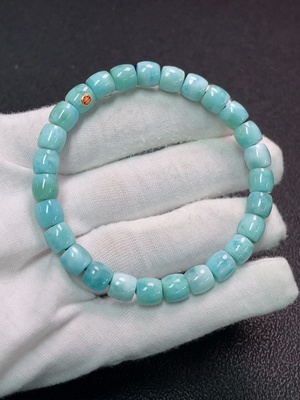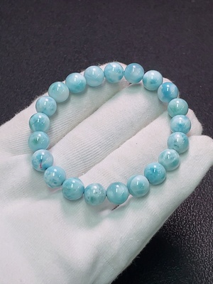 C28301845 Larimar bracelet, non-gold inlaid, approx. 6.4mm beads, total weight about 12.57g, visible organic matter