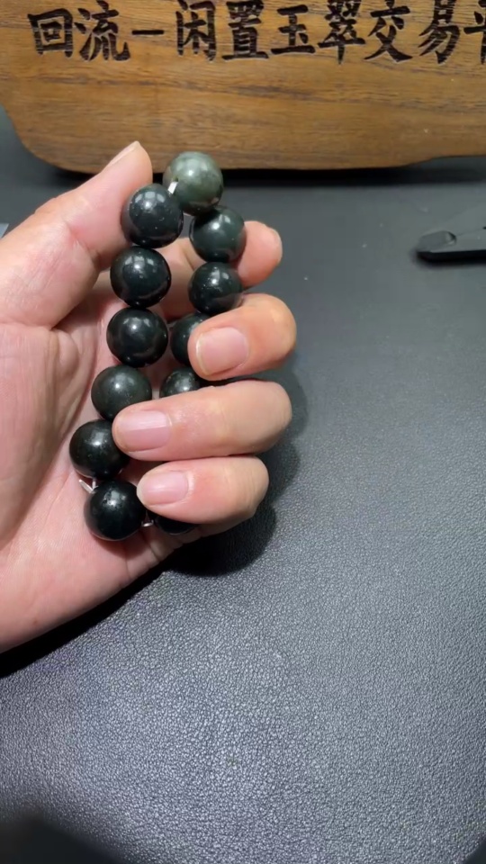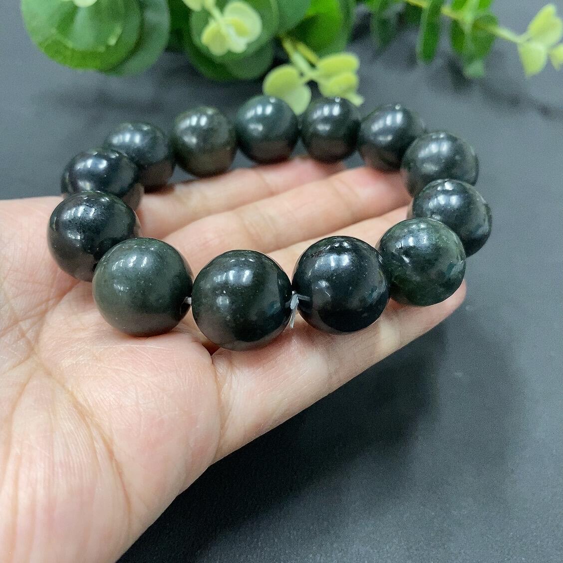 Hetian Jade Bead Necklace, 16mm, Total Weight 82.2g