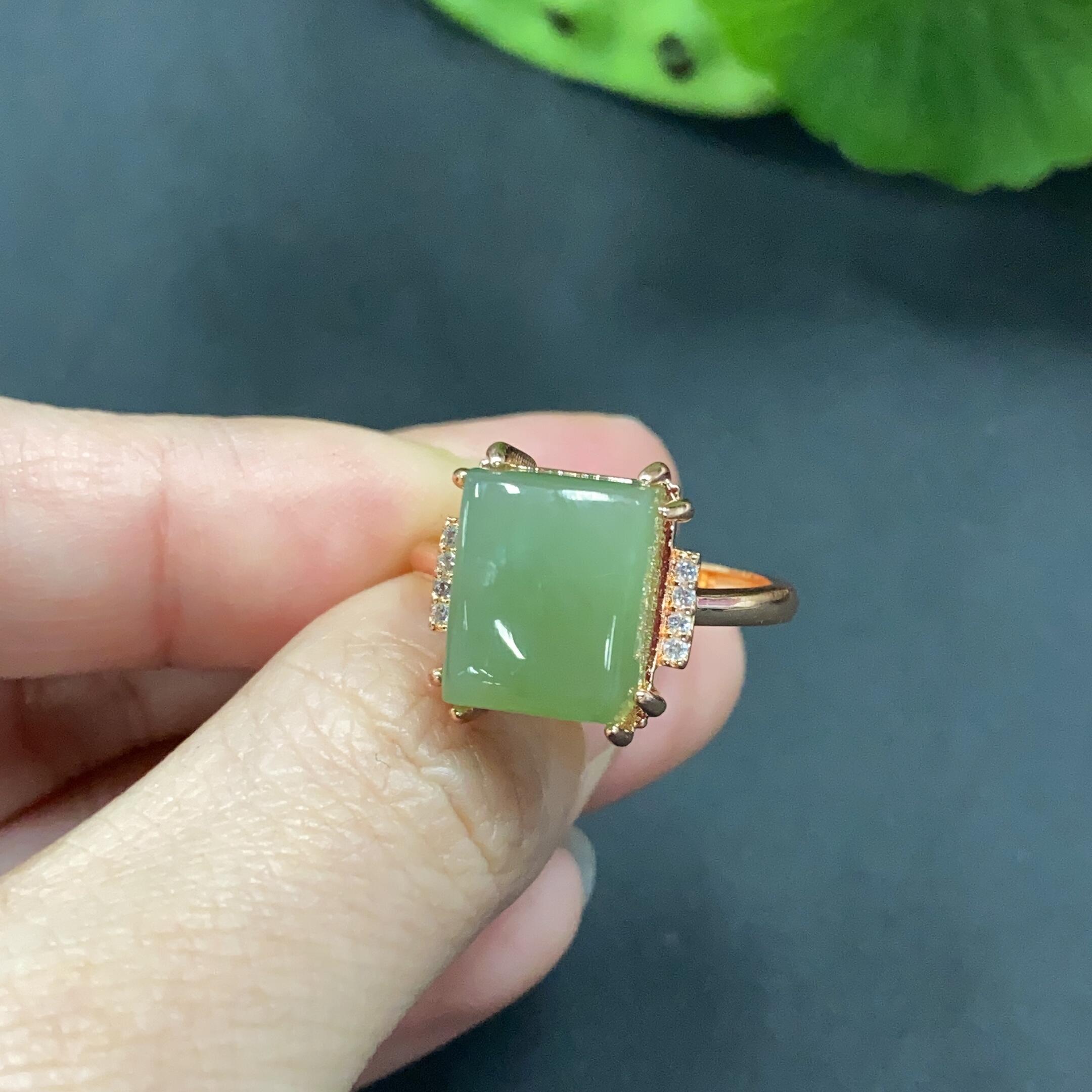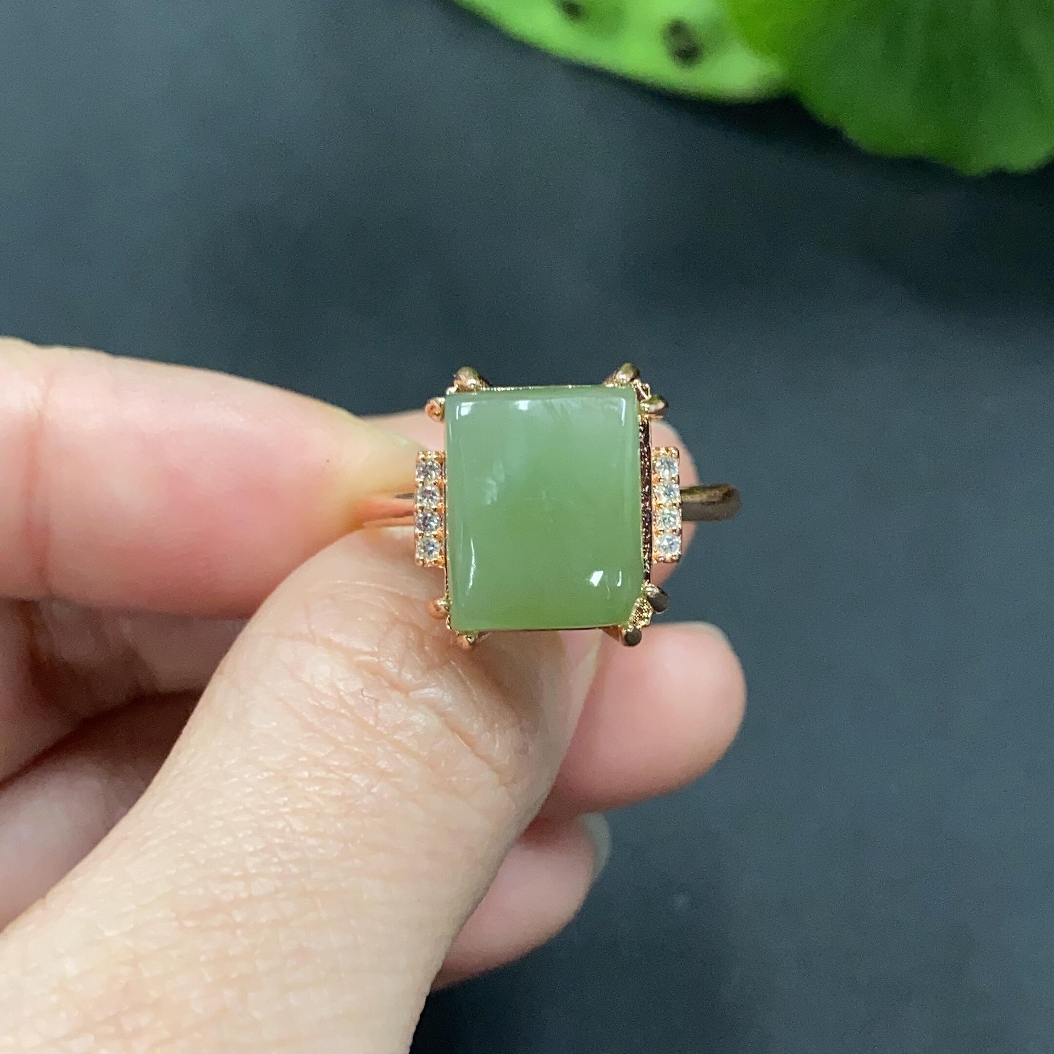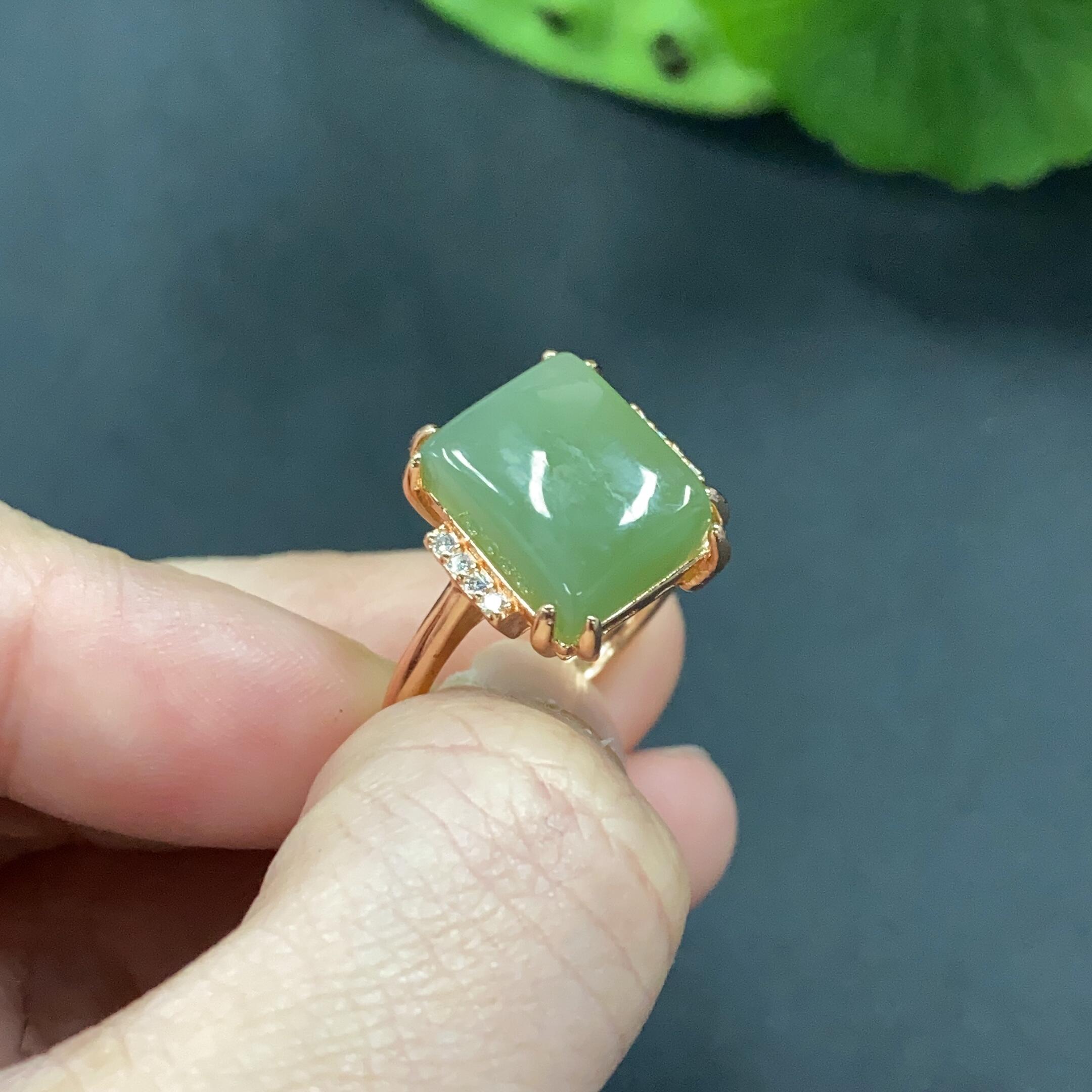 Hetian Jade Cabochon Inlaid Ring (Non-Gold Setting, Total Weight 3.6g)