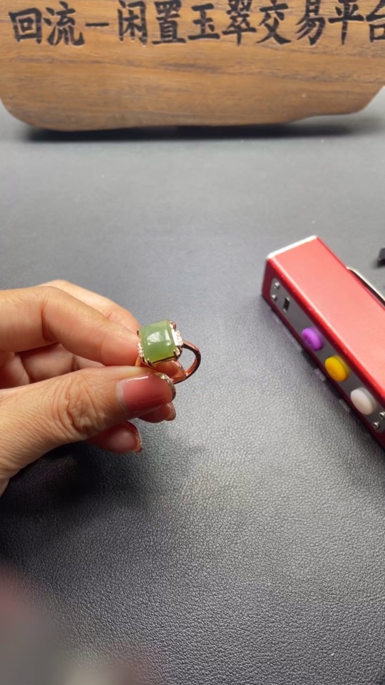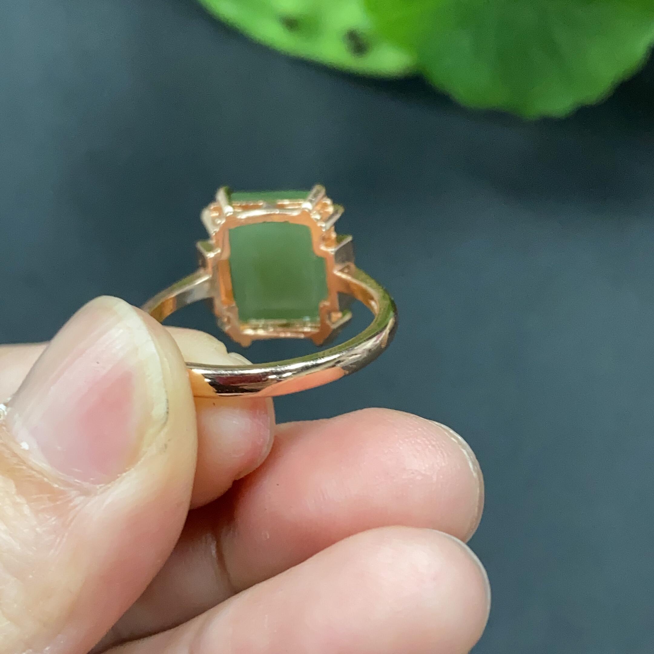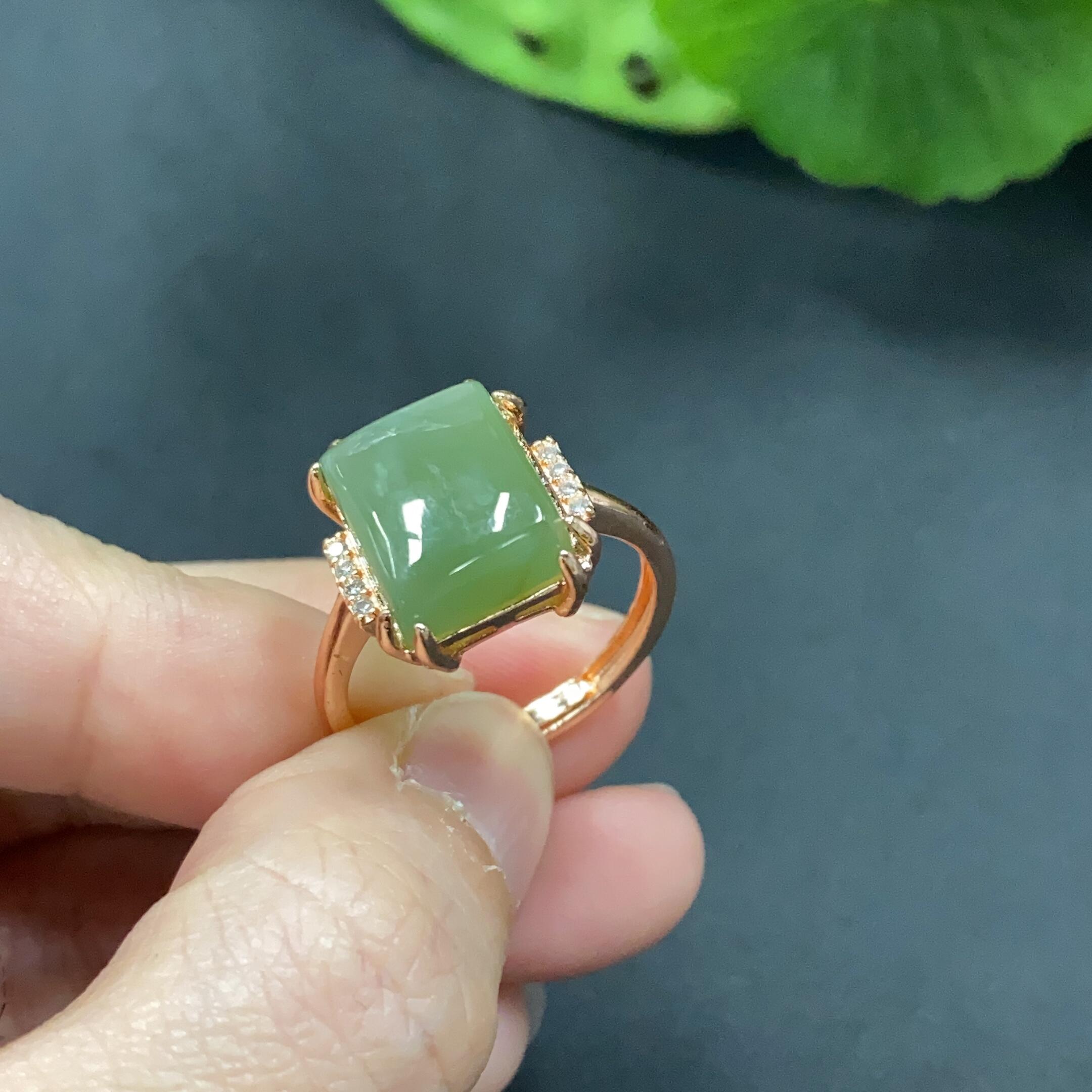 Hetian Jade Cabochon Inlaid Ring (Non-Gold Setting, Total Weight 3.6g)
