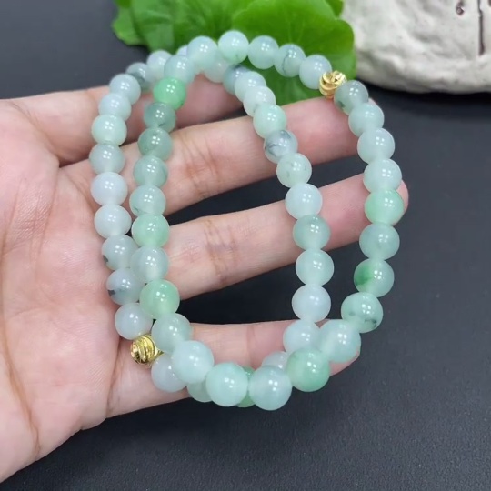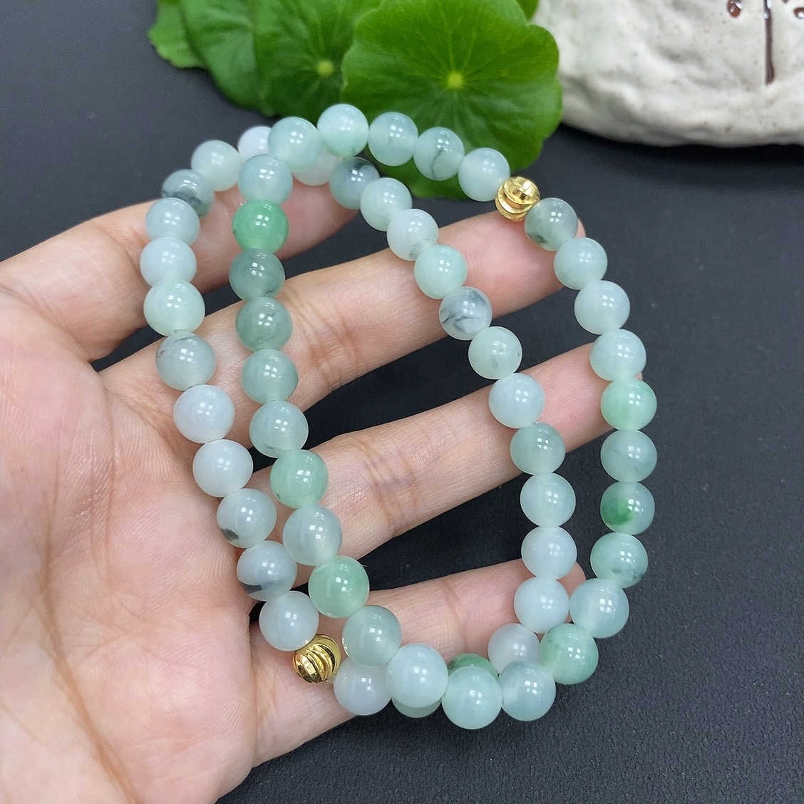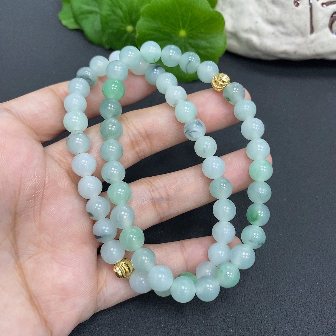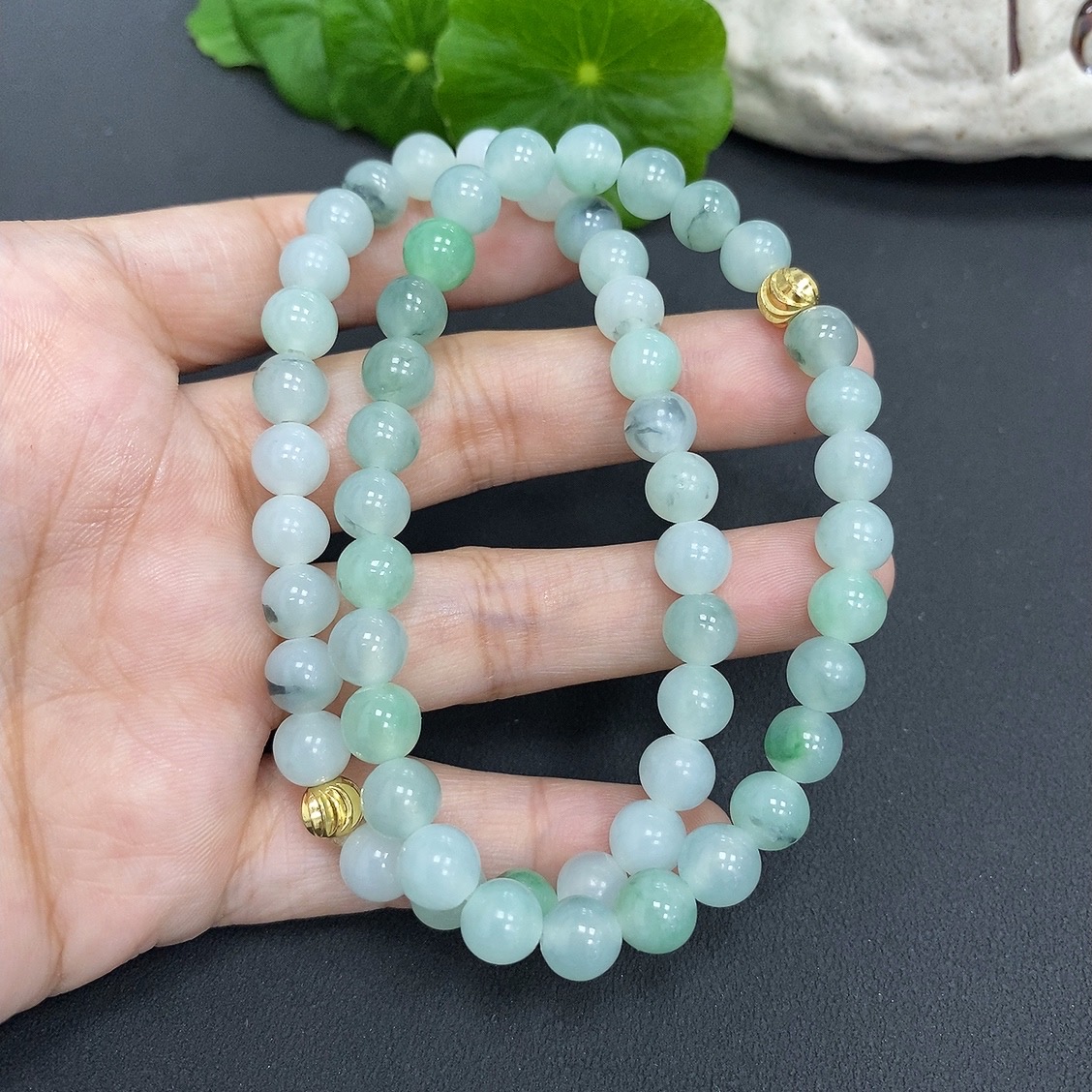 JadeiteBeaded Bracelet 2pcs with Individual Cracks Size 6.9